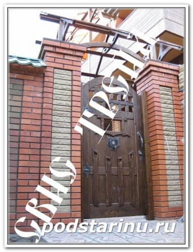 Двери деревянные из искусственно состаренного дерева с элементами художественной ковки. Wooden doors of artificially aged wood with elements of artistic forging.