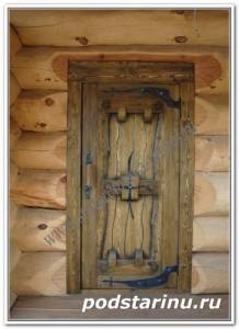 Двери деревянные из искусственно состаренного дерева с элементами художественной ковки. Wooden doors of artificially aged wood with elements of artistic forging.