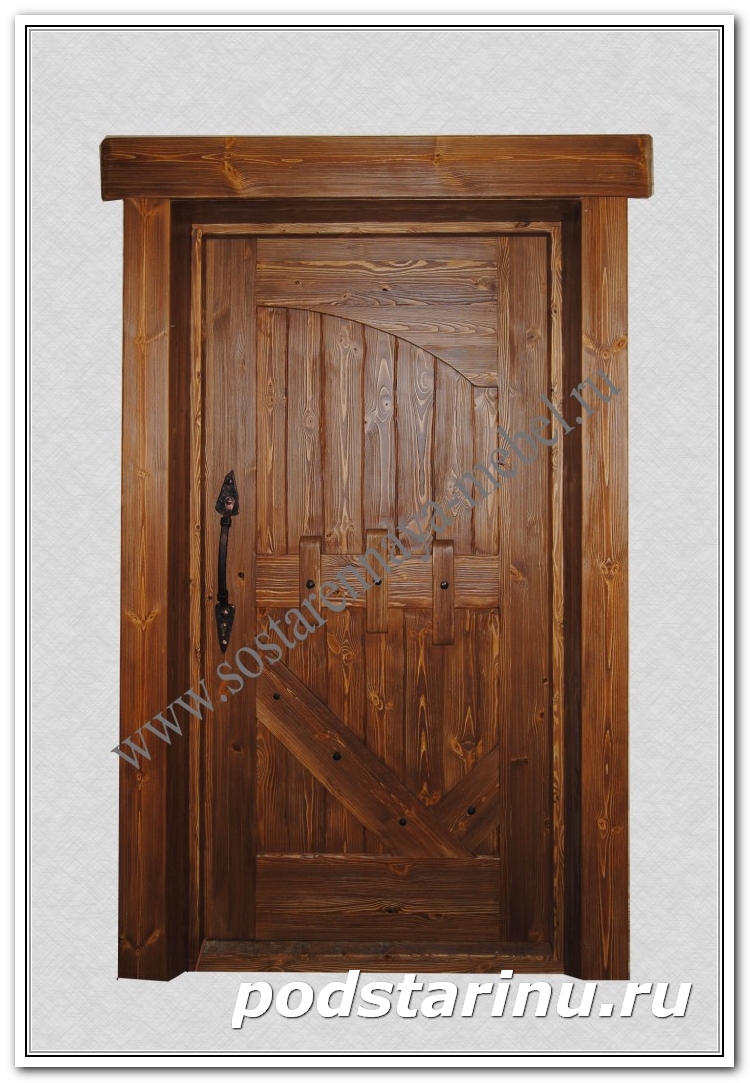 Двери деревянные из искусственно состаренного дерева с элементами художественной ковки. Wooden doors of artificially aged wood with elements of artistic forging.