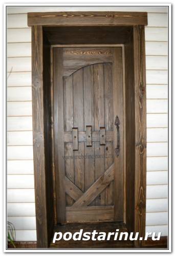 Двери деревянные из искусственно состаренного дерева с элементами художественной ковки. Wooden doors of artificially aged wood with elements of artistic forging.