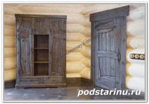 Двери деревянные из искусственно состаренного дерева с элементами художественной ковки. Wooden doors of artificially aged wood with elements of artistic forging.
