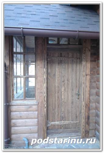 Двери деревянные из искусственно состаренного дерева с элементами художественной ковки. Wooden doors of artificially aged wood with elements of artistic forging.